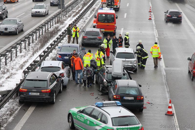 Ingolstadt (DK) Bei sieben Unfällen auf der A 9 haben sich am Samstagvormittag neun Menschen verletzt.