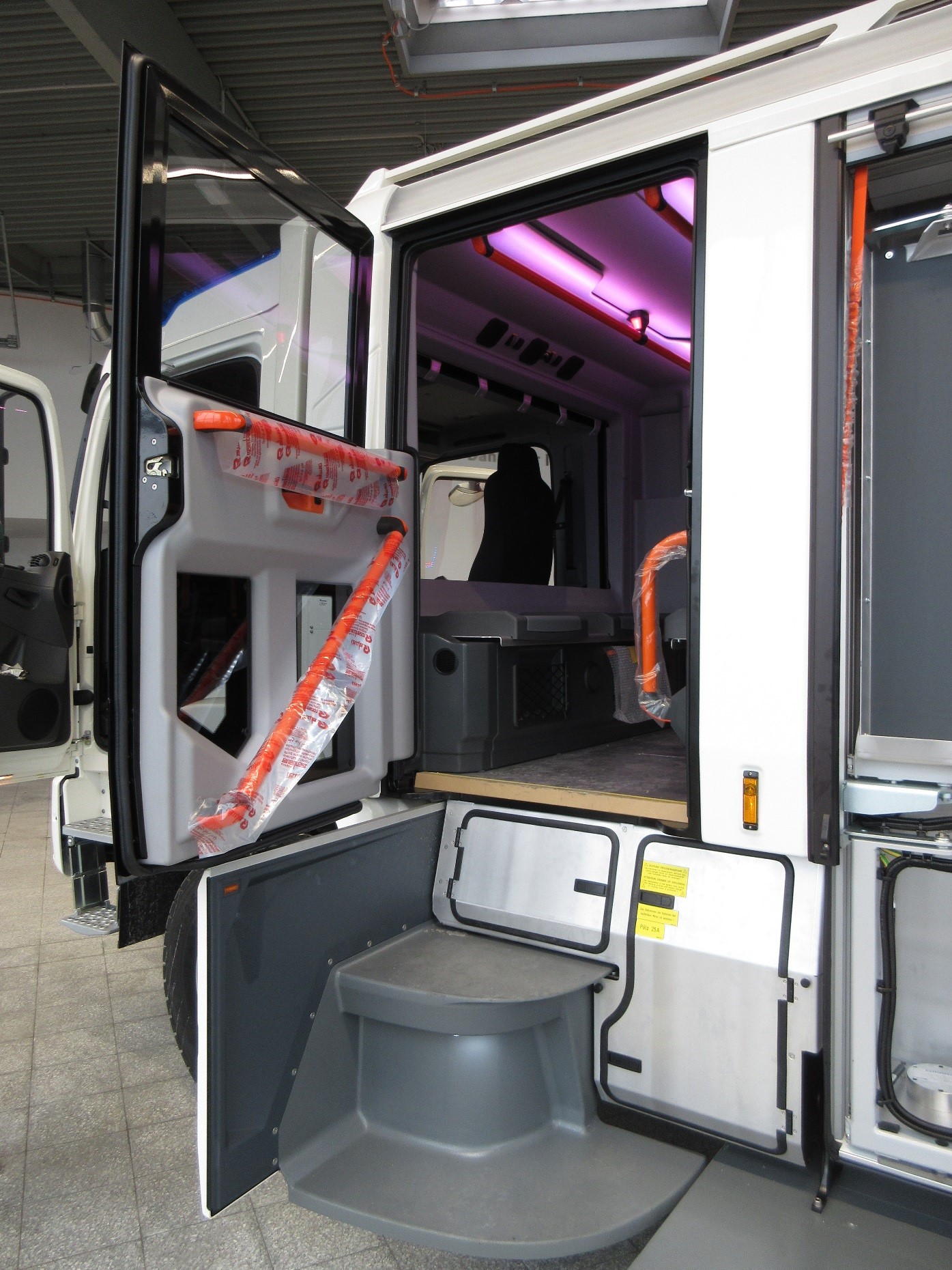 zugänglich, während die Fahrerhauskabine und der Mannschaftsraum bereits fertig gestellt sind. Hier konnten gemeinsam mit